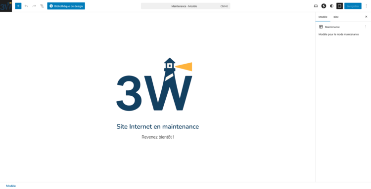 3W Mode Maintenance est un plugin de gestion de page maintenance générant un template FSE administrable. Son utilisation est très simple :